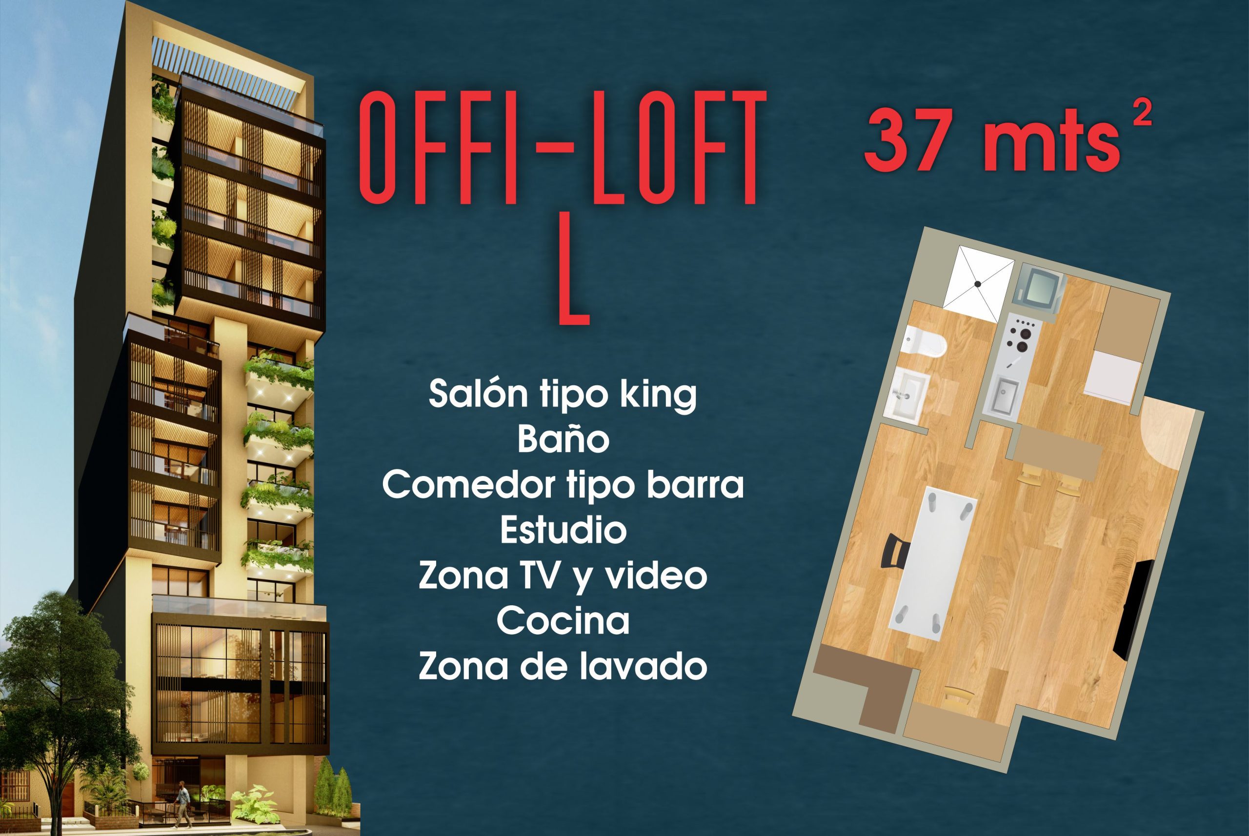 Offi-loft L totalmente independientes, con diseño interior moderno y lujoso que resalta por sus amplios espacios, iluminación y ventilación natural.